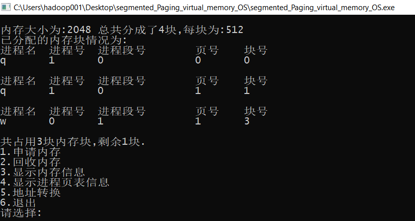 合肥工业大学2020年《操作系统》课程设计。题目:段页式虚拟存储管理系统:建立一个段页虚拟存储管理系统的模型。Course Design of Operating System of Hefei University of Technology in 2020. Topic: Segment Pa...