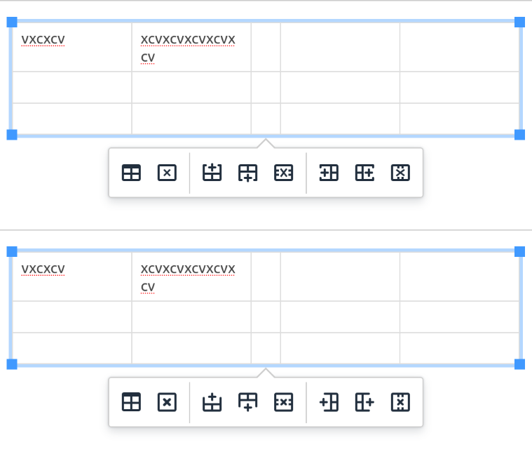 Compared to the previous design I find the new icons for table editing hardly decipherable, especially at very dense display resolutions (as smaller the icons, as more difficult to distinguish). If not replacing those icons entirely, one should at least make the X in the icons red and the + green.