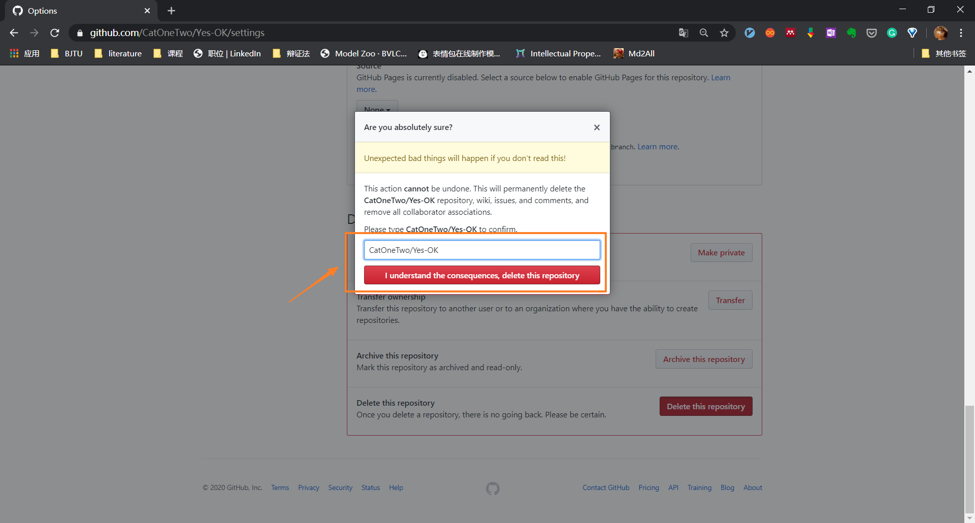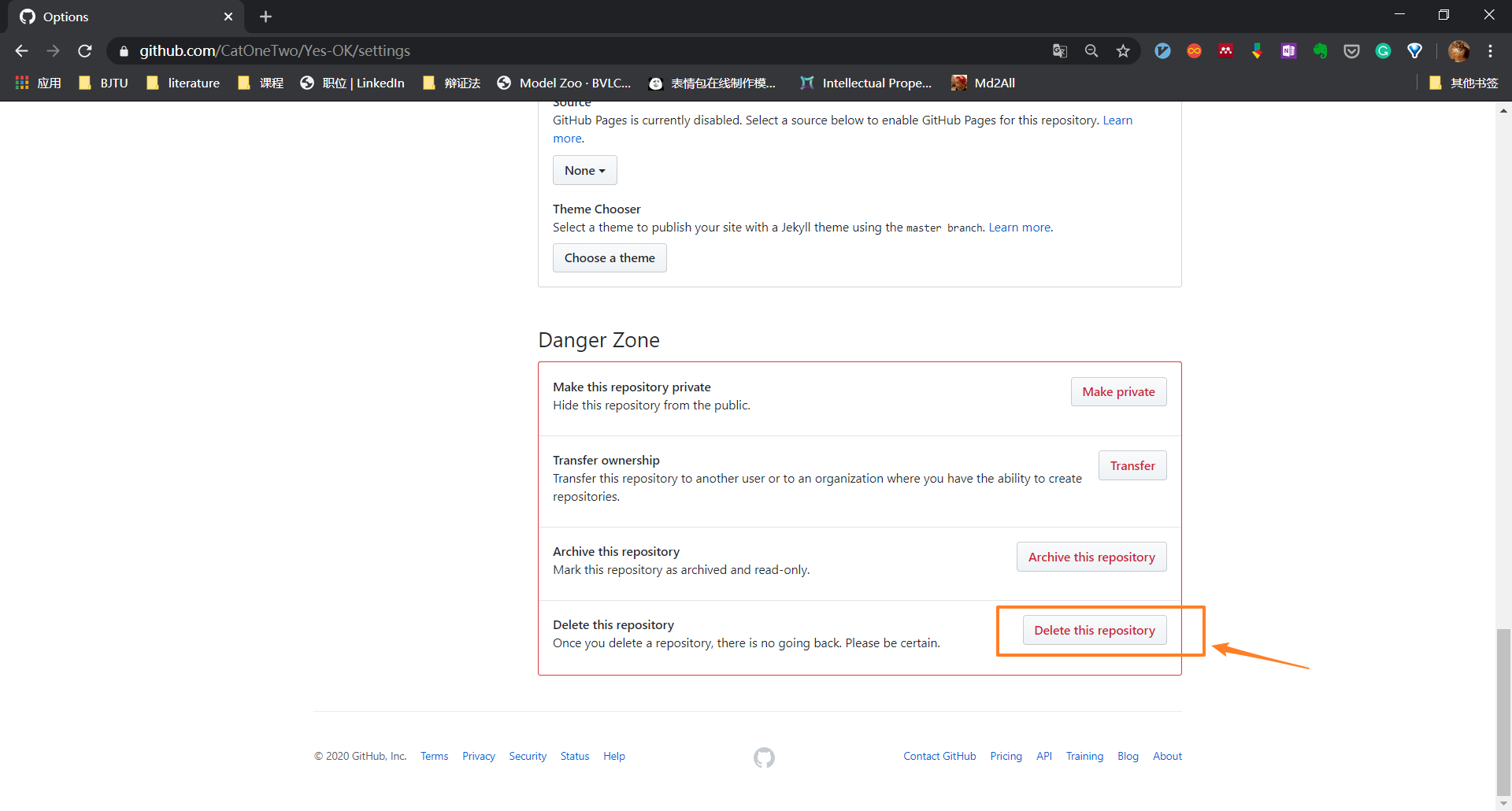 进入的设置页面可删除仓库,删除按钮在页面最下面👇