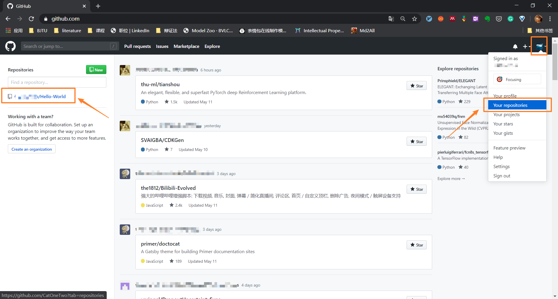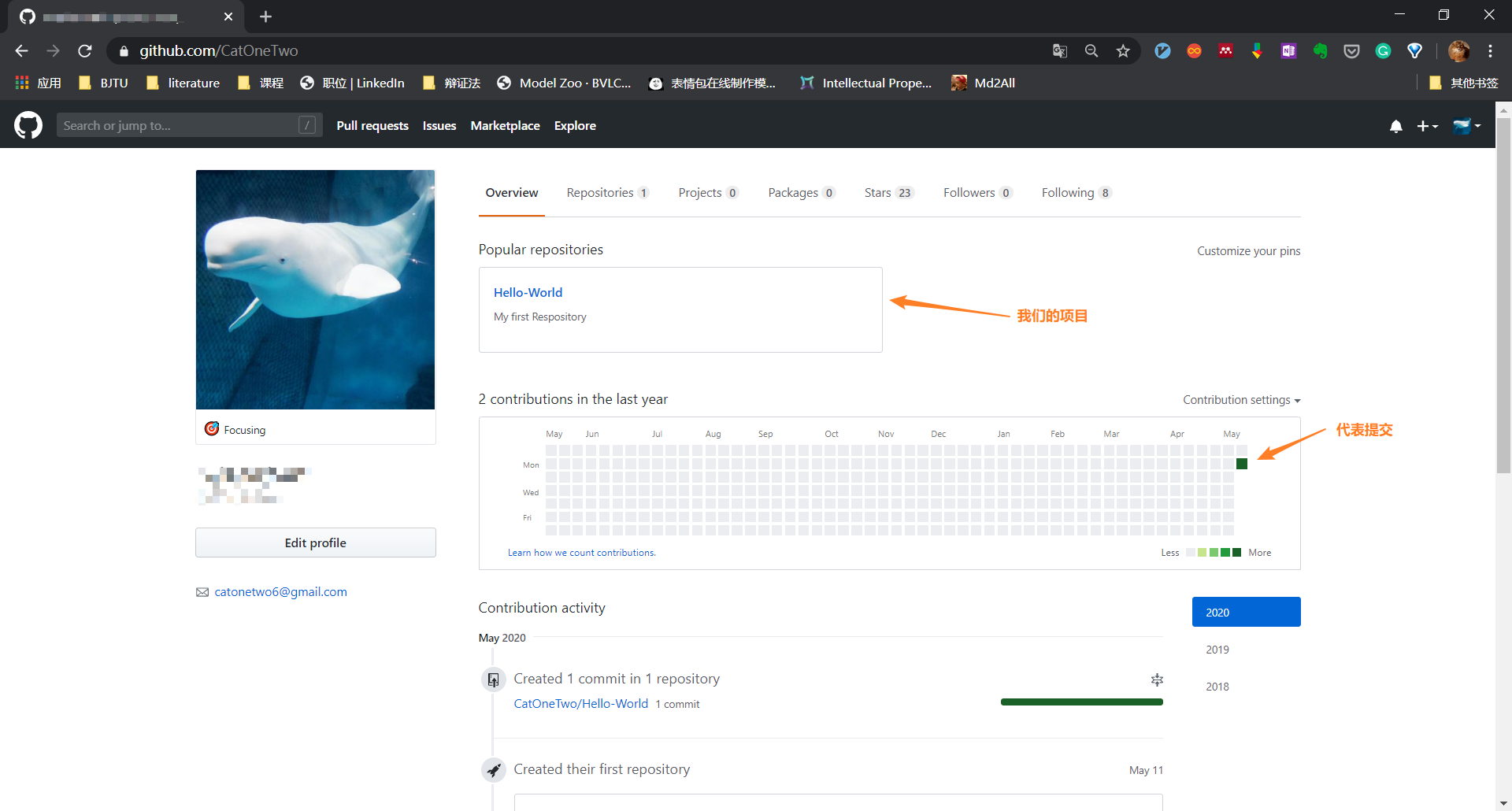当我们打开个人界面,就可以在 Overview 看到我们的仓库啦✌