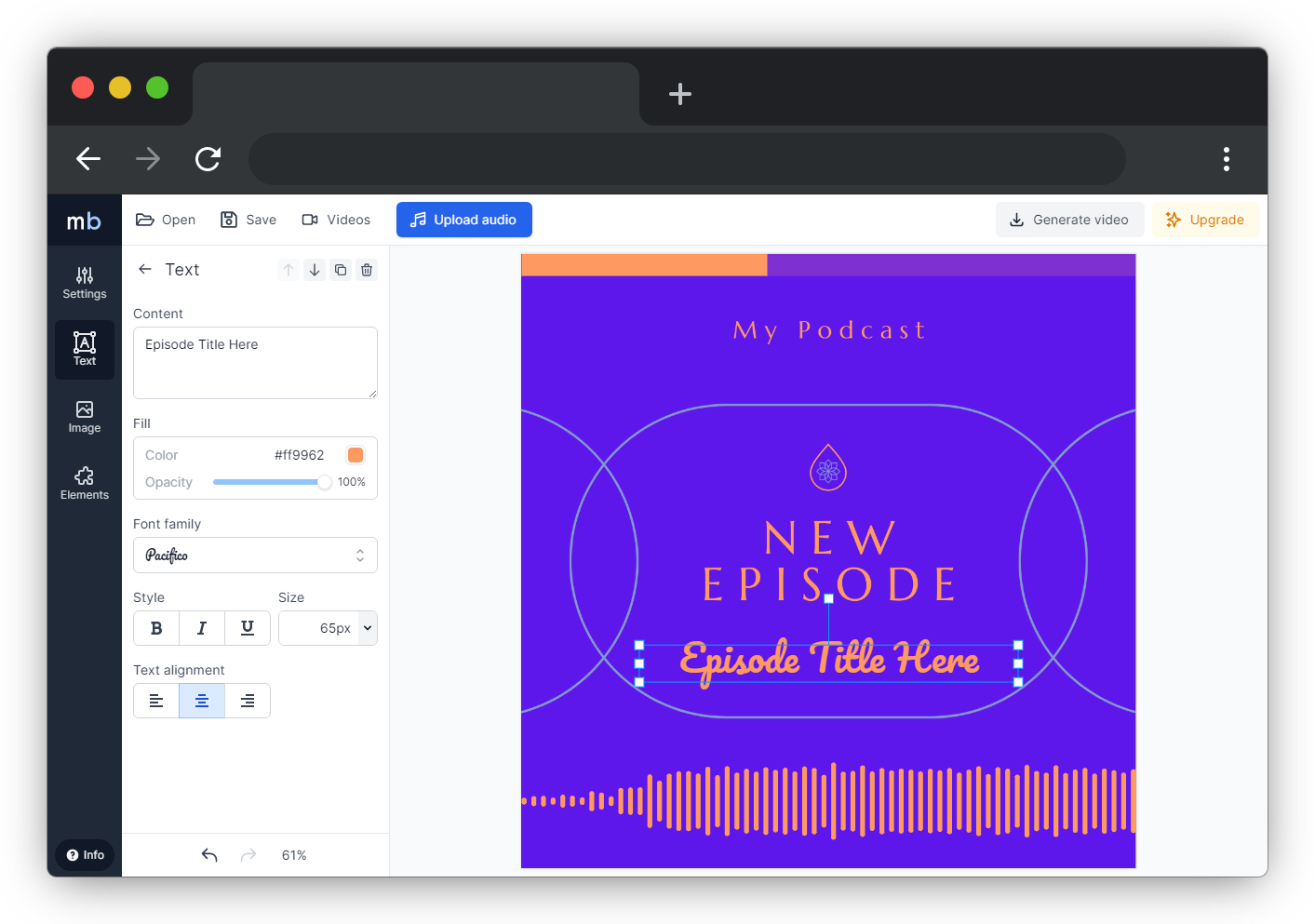 MediaBits.io editor to create videos for audio clips