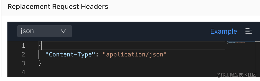 In the example below, the Content-Type header in the request will be replaced with application/json.