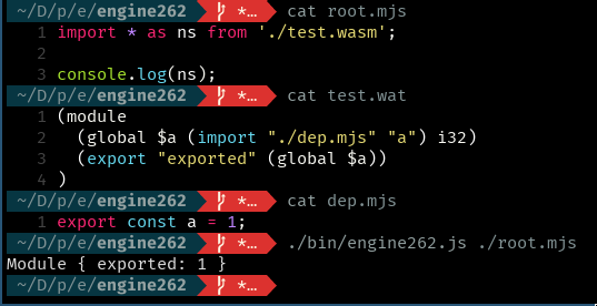 @xtuc if you do export let a = 1 and then (import "whatever" "a"), it should work fine. the let a = 1 will evaluate before the execution of the wasm module (https://webassembly.github.io/esm-integration/js-api/index.html#module-execution). the case where it would not work fine is if there is a circularity between those where the wasm module's evaluation happens first, exacerbated because of the value snapshots.