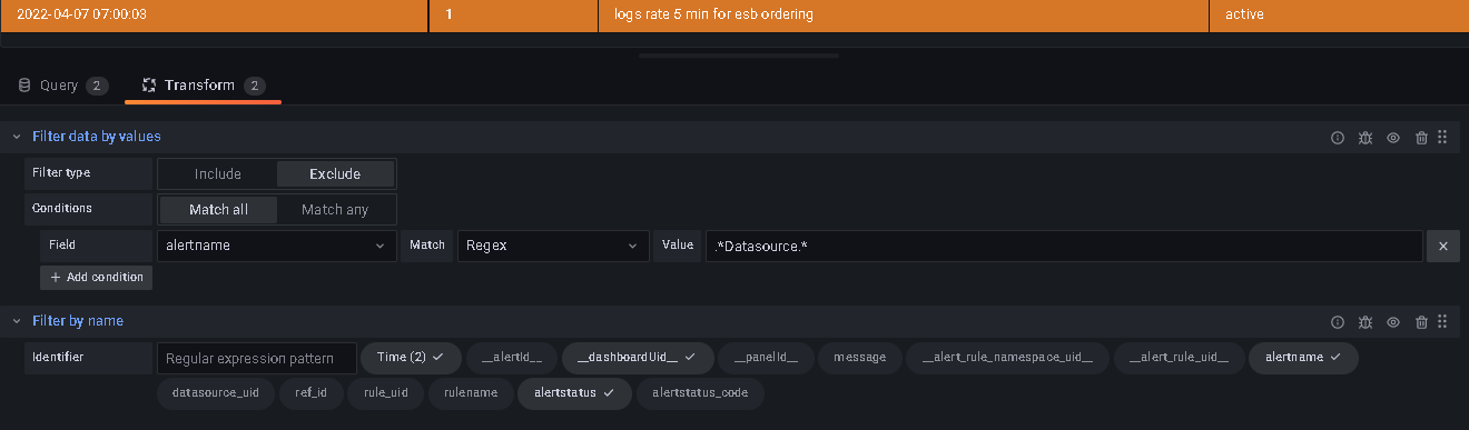 After upgrade from 7.5.0 to 8.4.4 alert manager data source (camptocamp-prometheus-alertmanager-datasource) started to behave differently. It used to show only alarm labels as a table but now started rotating in time showing alarm labels or annotations. I cannot catch why and at what interval or how to control it.
