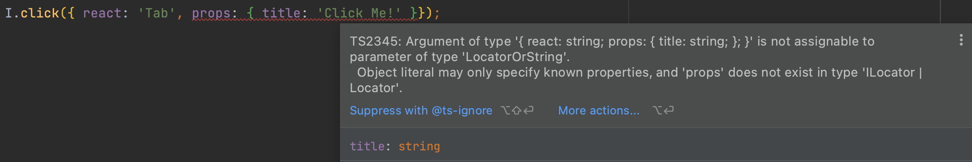 When using the React locator examples from the docs, TypeScript is throwing an error at me.