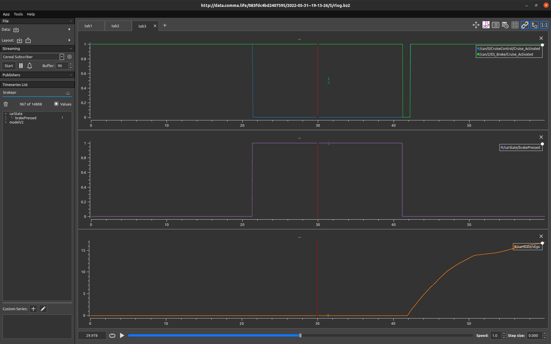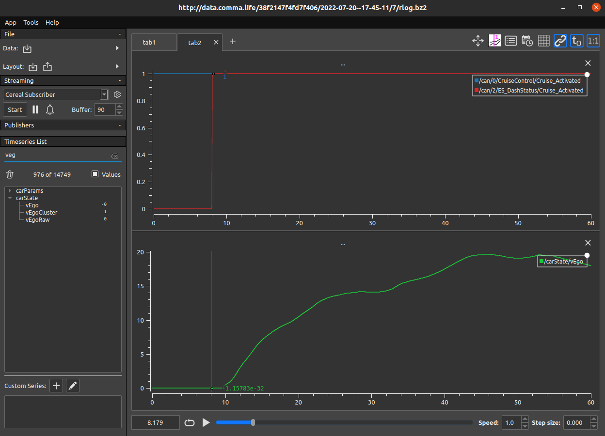 ES_DashStatus->Cruise_Activatedon Forester 2019 goes low when at a standstillES_DashStatus->Cruise_Activatedon Subaru Impreza 2019 goes low when user is actuating the gas pedal while ACC stays engagedES_Brake->Cruise_Activatedon Subaru Forester 2019 stays high after user disengaged with the brake at a standstill