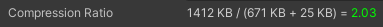 When close to 1 or lower, the value will be in yellow/red color indicating the generated data size is close to or even larger then the source and you should either change atlas generation configuration (eg, increase dice unit size) or not use the solution at all.