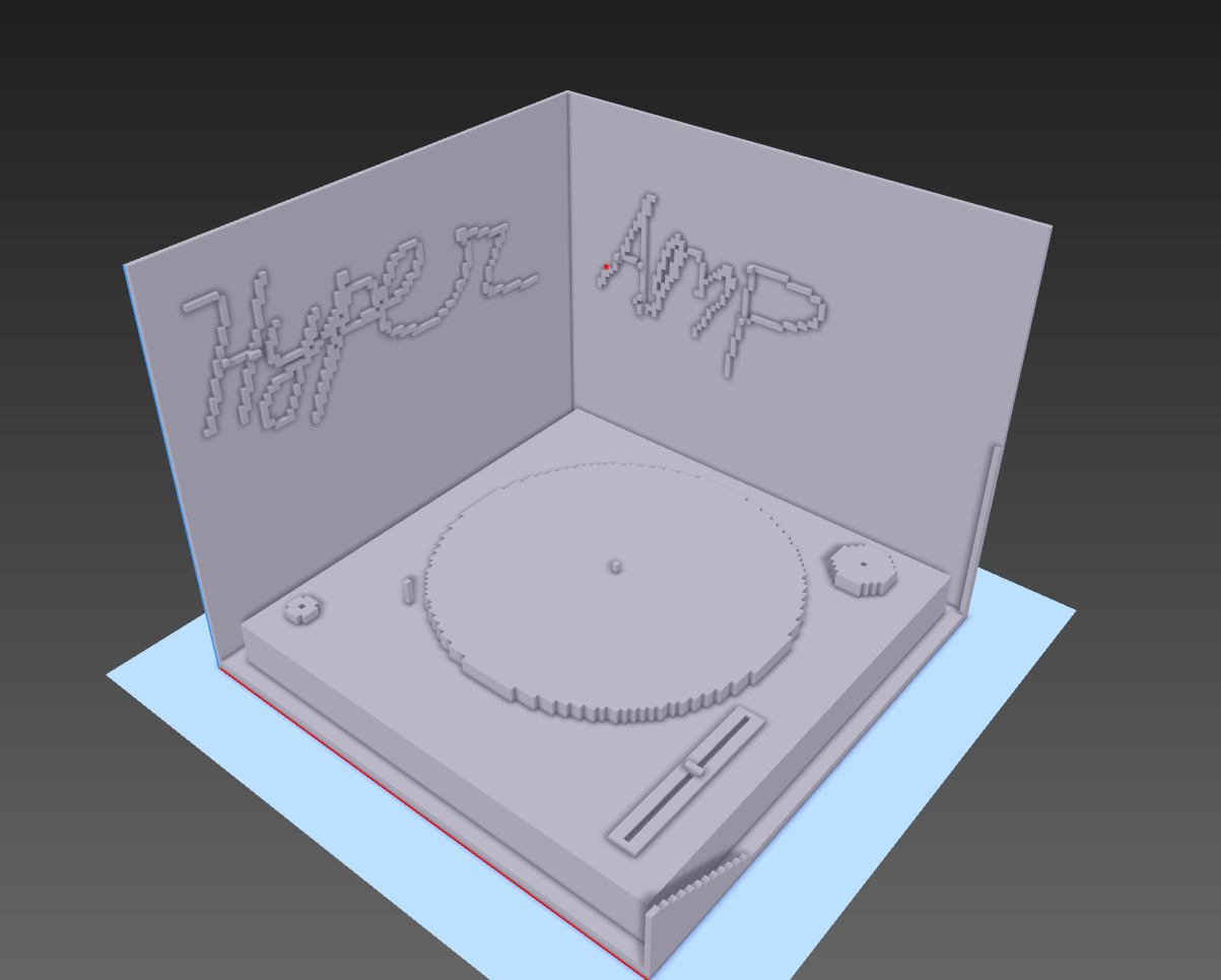 I like the 45 RPM geometry. Maybe we can do something like this and use the extra space in the middle for some neat details like the name hyperamp: