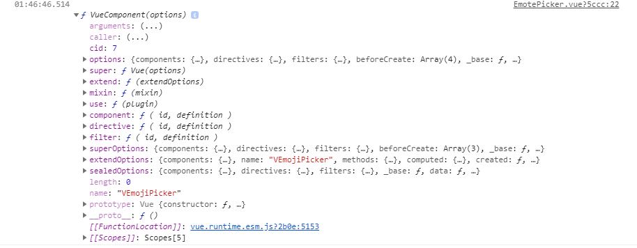 And therein lies the problem. The module exports are different. The component registration fails, because VEmojiPicker is not a valid component.