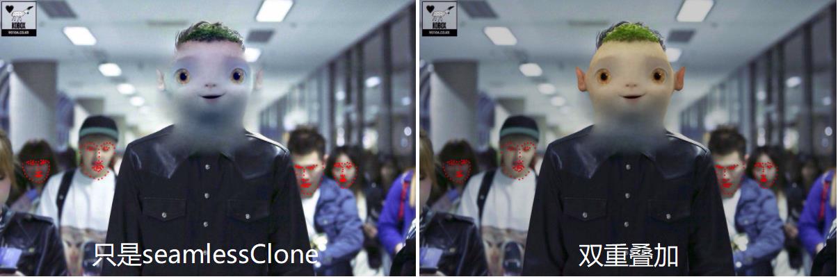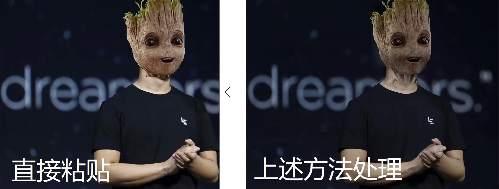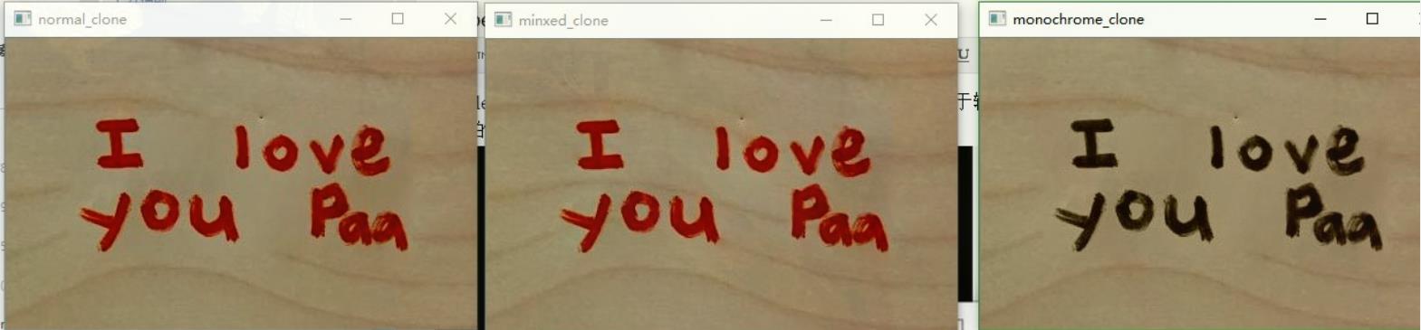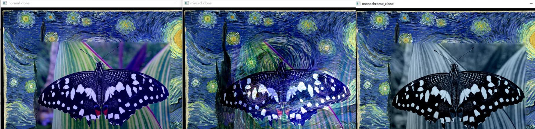 # 会把src图的边缘进行模糊化,同时整个src图的色彩融合到dst中->需要src图较清晰,dst背景较简单,可以接受src图周边边缘模糊的场景