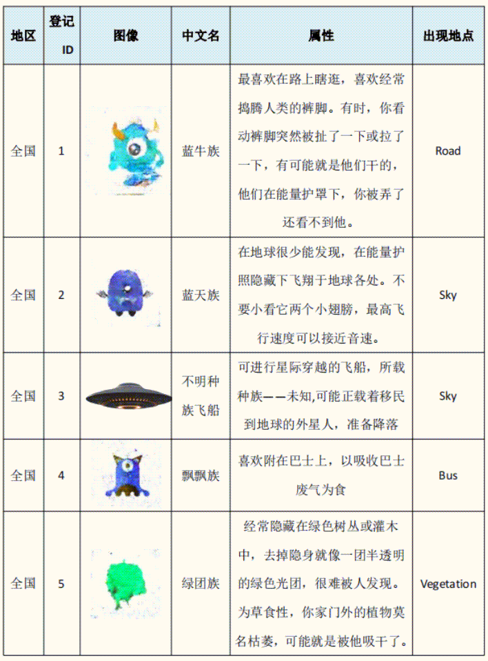实现对应位置的叠加AR效果。如:天空中出现飞在天上的外星生物,树丛中会出现喜欢在树上的草食性外星生物。