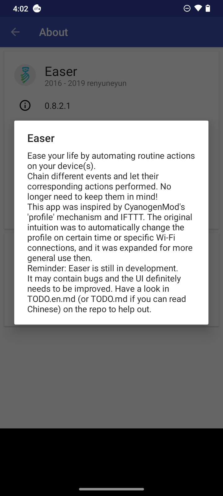 - Tap in About