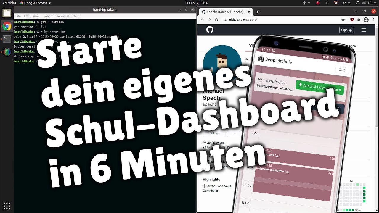 Schul-Dashboard zur Integration von Stundenplan, Vertretungsplan sowie E-Learning via NextCloud und Jitsi.