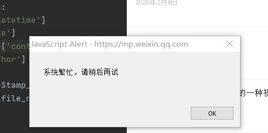 TavaScript Alert-https://mp.weixin.qq.com 系统繁忙,请稍后再试