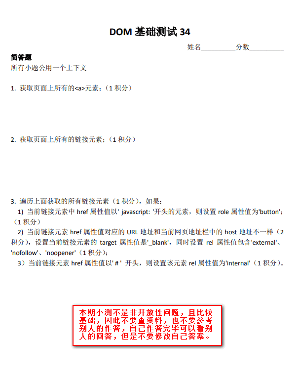 **非开放性问题,闭卷,勿查资料,大家诚实作答**