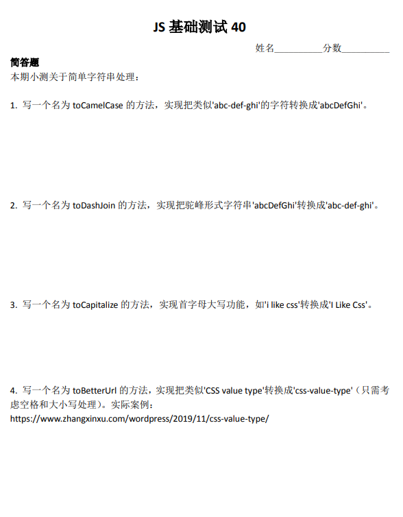 //zxx: 题3多空格会运行报错,strArr[i][0] && strArr[i][0].toUpperCase()可修复。题4测试不通过
