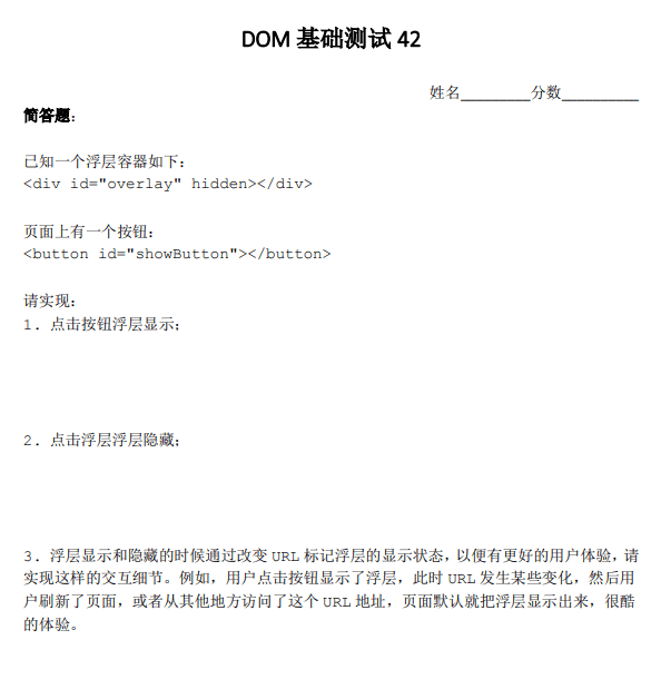 <a>元素 href触发hash变化,还是JSlocation.hash = 'overlay',都不适合实际开发,因为锚点定位会触发滚动和重定位等一堆意料之外的问题,例如我们希望浮层动画效果进入,由于锚点定位,完全没戏。所以,需要JS额外处理下,把hash改成(例如)#&overlay。既能标记元素,又不至于触发锚点定位。 -
