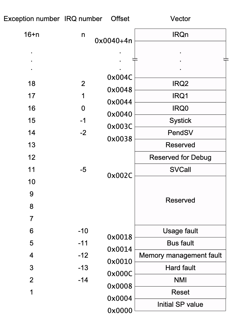 No handlers for the Memory management, Bus, or Usage faults