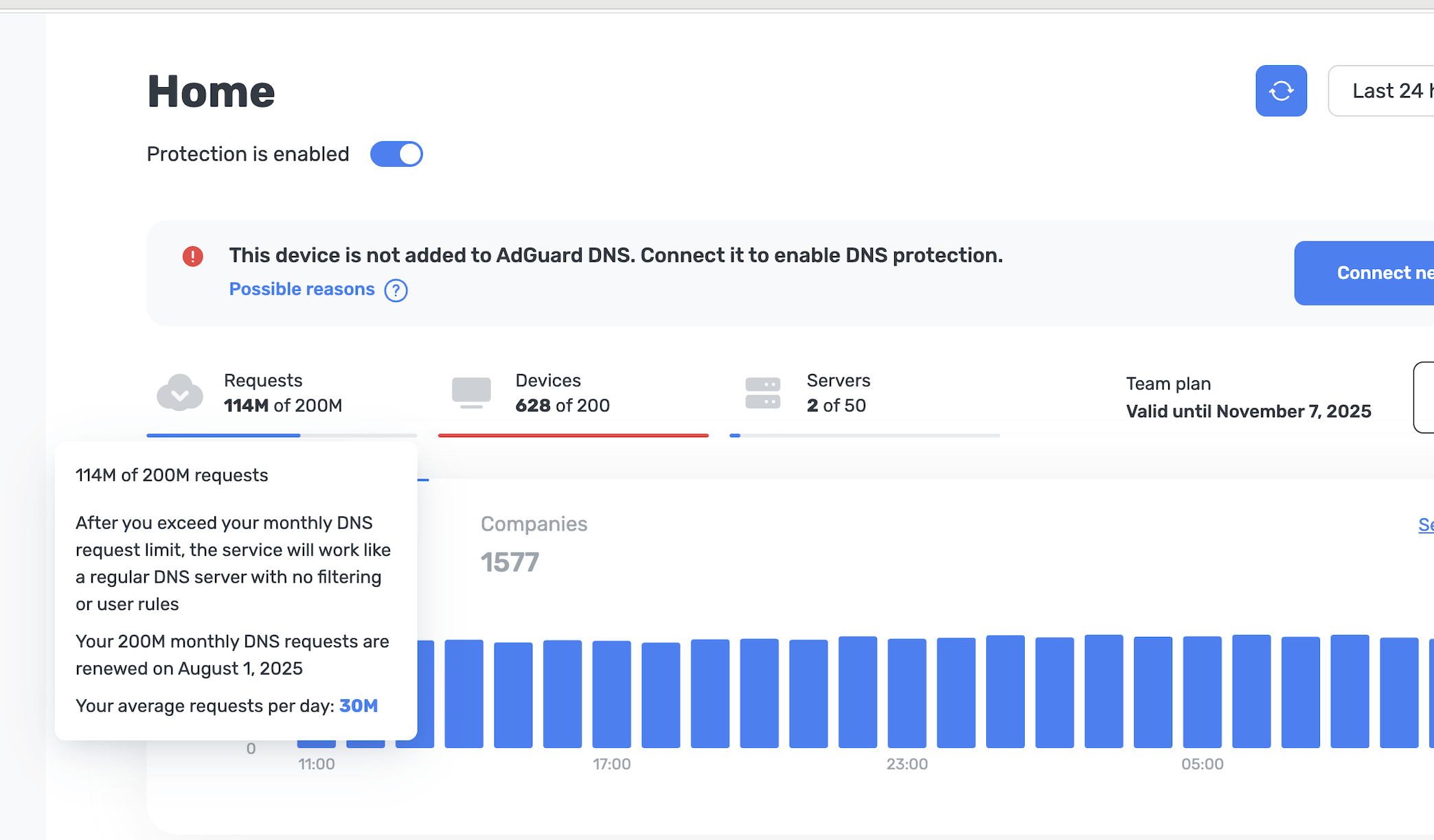 Can you check maybe you off Log DNS requests settings in the account configurations?