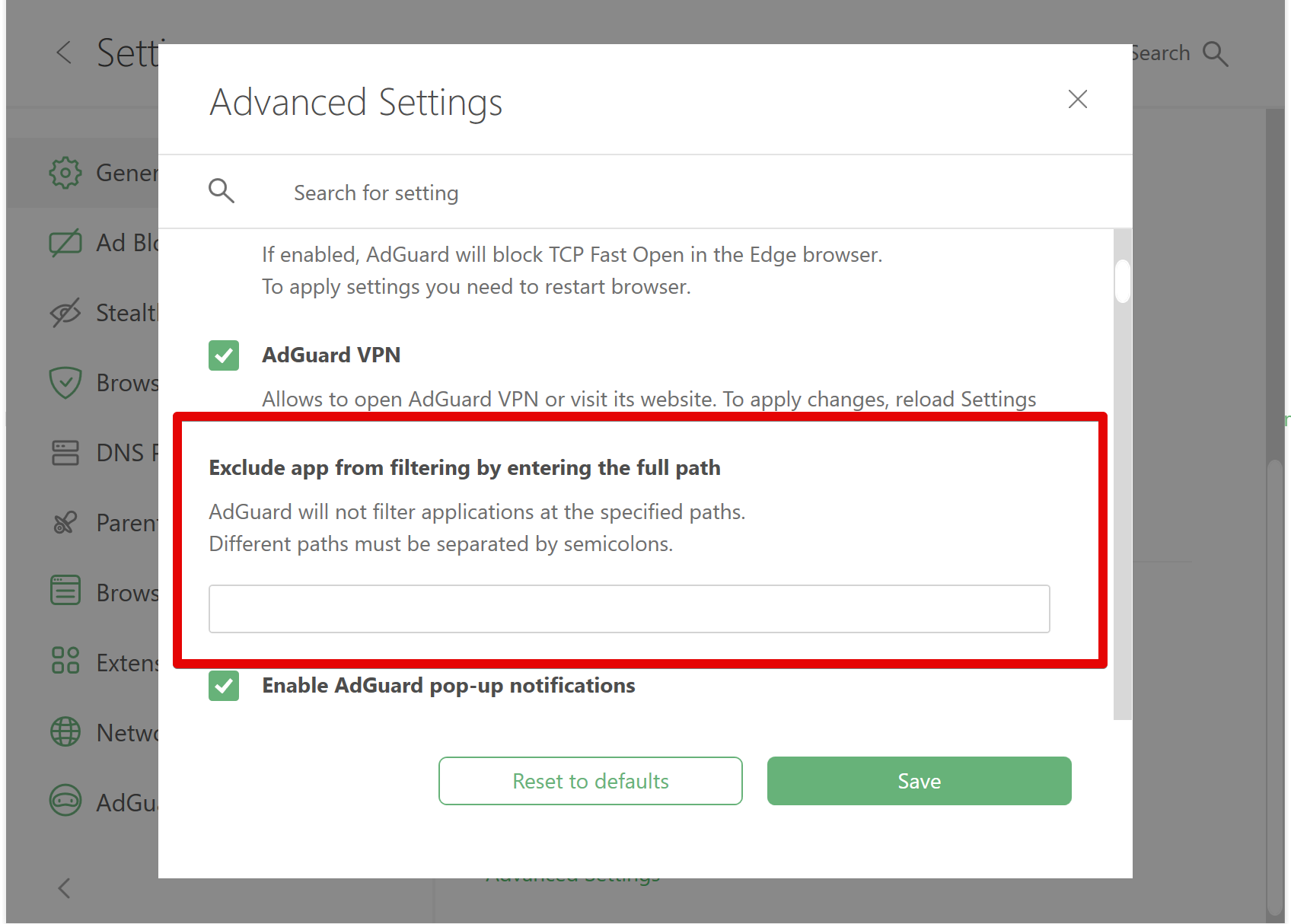 AdGuard for Windows ON