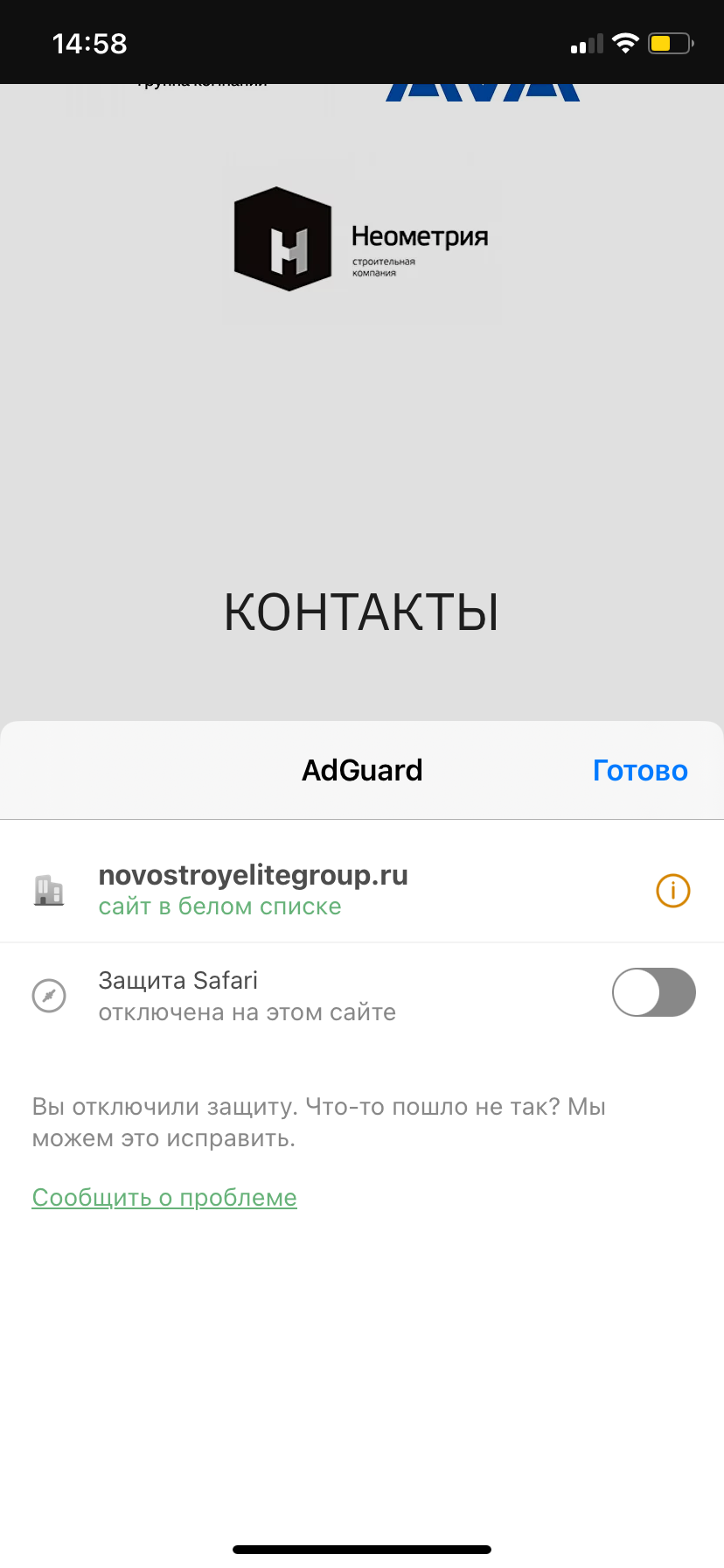 novostroyelitegroup.ru - adding allowing rule does not unblock ads