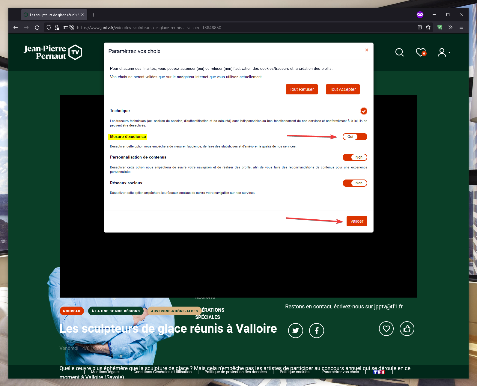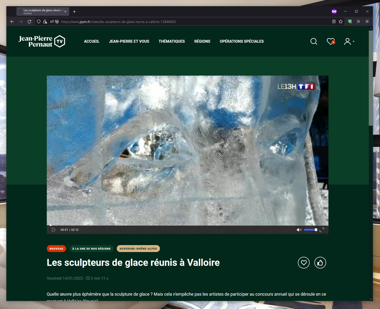 Example: https://www.jpptv.fr/video/les-sculpteurs-de-glace-reunis-a-valloire-13848850 (link go to the home page but you will be redirected to this video page once logged in with your MYTF1 account)