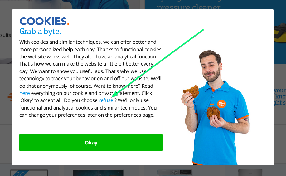 - Go to https://www.coolblue.be/en and refuse cookies.