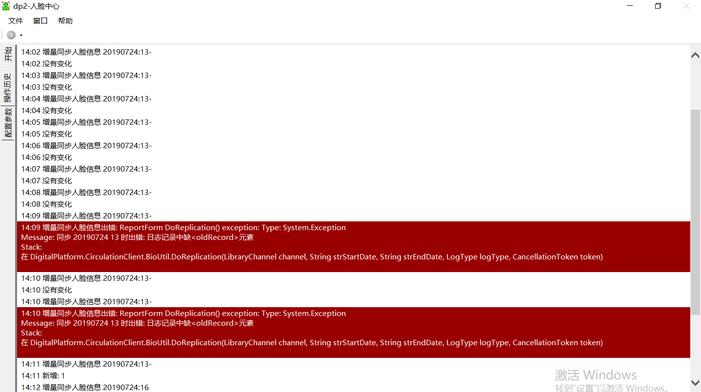 注:人脸中心同步增量信息时,报“日志记录中缺<oldRecord>元素”,没有语音提示,发现中间报了这个错2次,之后又自动正常同步增量了。