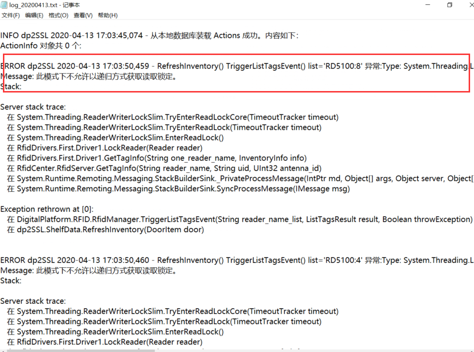 20200423-1355-marui:智能书柜,dp2ssl测试版:1.4.7417.42469,内务版本:3.9.7408.40900,读者将图书从一个门移到另一个门,先关来源门,再关目标门。读者会产生无效的借阅记录,导出统计报表时剔除这部分记录。 注:读者还了10本书,关门后,1本书显示“转圈”很长时间。我关闭了对话框。过一会界面显示红色e。但是本地数据库这本书的状态已经是sync。界面显示e,再次刷读者卡开门,e一直不消失。