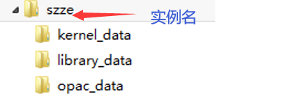 新服务器上创建新实例的数据目录要遵循以下命名规则:实例名下创建名称分别为kernel_data、library_data、opac_data的目录。如下图。实例名要以字母命名,不能有汉字。