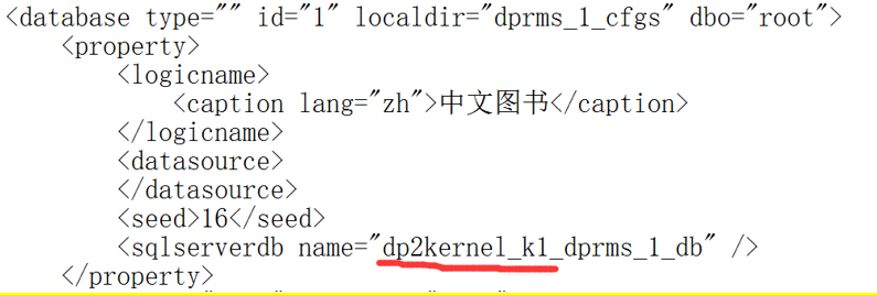 3.2.1 先将kernel_data目录的databases.xml文件的所有数据库的底层库名称为本次实际的内核实例名_dprms_*,如下图