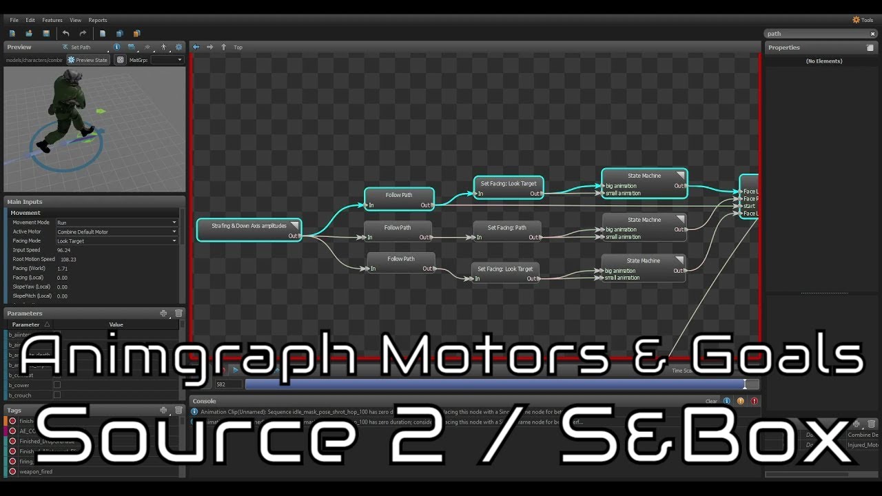 - Examples of motor/goal nodes in animgraphs: Follow Path, Set Facing (Target/Path), and couple more.