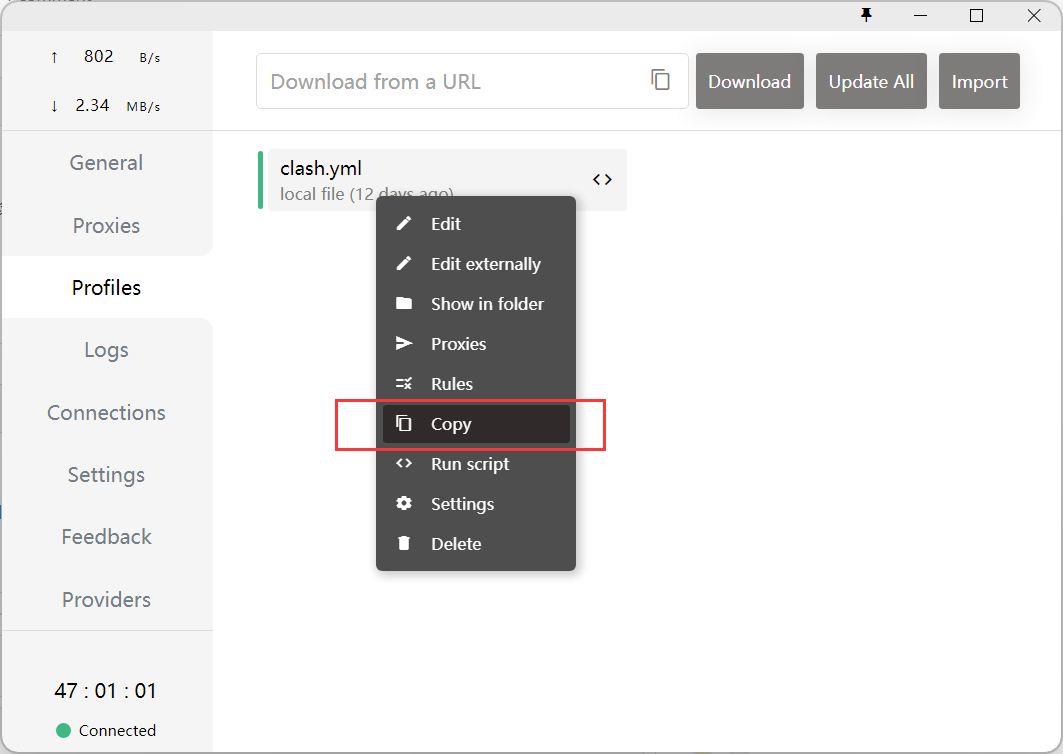 @zhanyeye 请问你这个py脚本,就是右键profile运行的那个script吗?我有点没搞懂,这样搞不是必须先download一个profile,然后写代码,然后右键运行,然后代码会生成一个新的profile?还是说老的需要保留,用来下次右键运行更新生成的那个config.yaml?