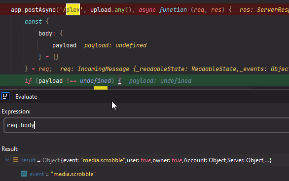 @k-boyle you could try debugging before multer gets ahold of the request(s) to see if plex is doing things differently now. I would think multer would transparently pass along a normal json POST (not multi-part) but I'm not so sure now.
