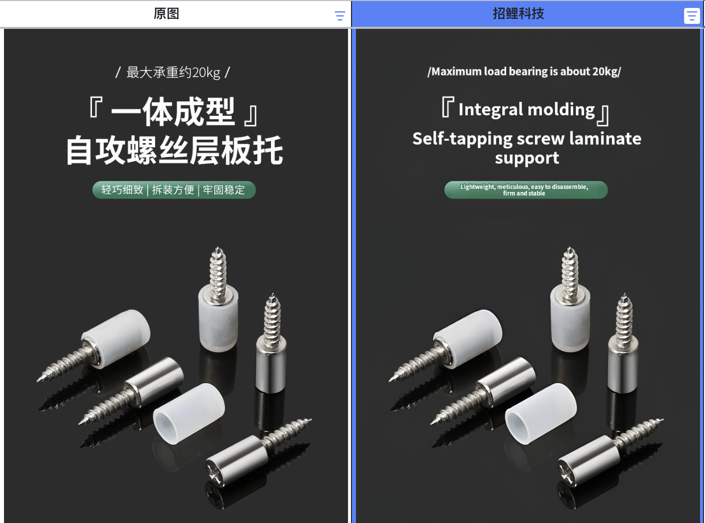 招鲤科技的图片翻译服务,是新推出的AI图片翻译产品,他融合了多个最新的AI模型,整体优化了翻译质量、样式排版和文字回填,把图片翻译的质量,提高到了一个新的水平。相比于全球所有的图片翻译服务商,它有如下特点: