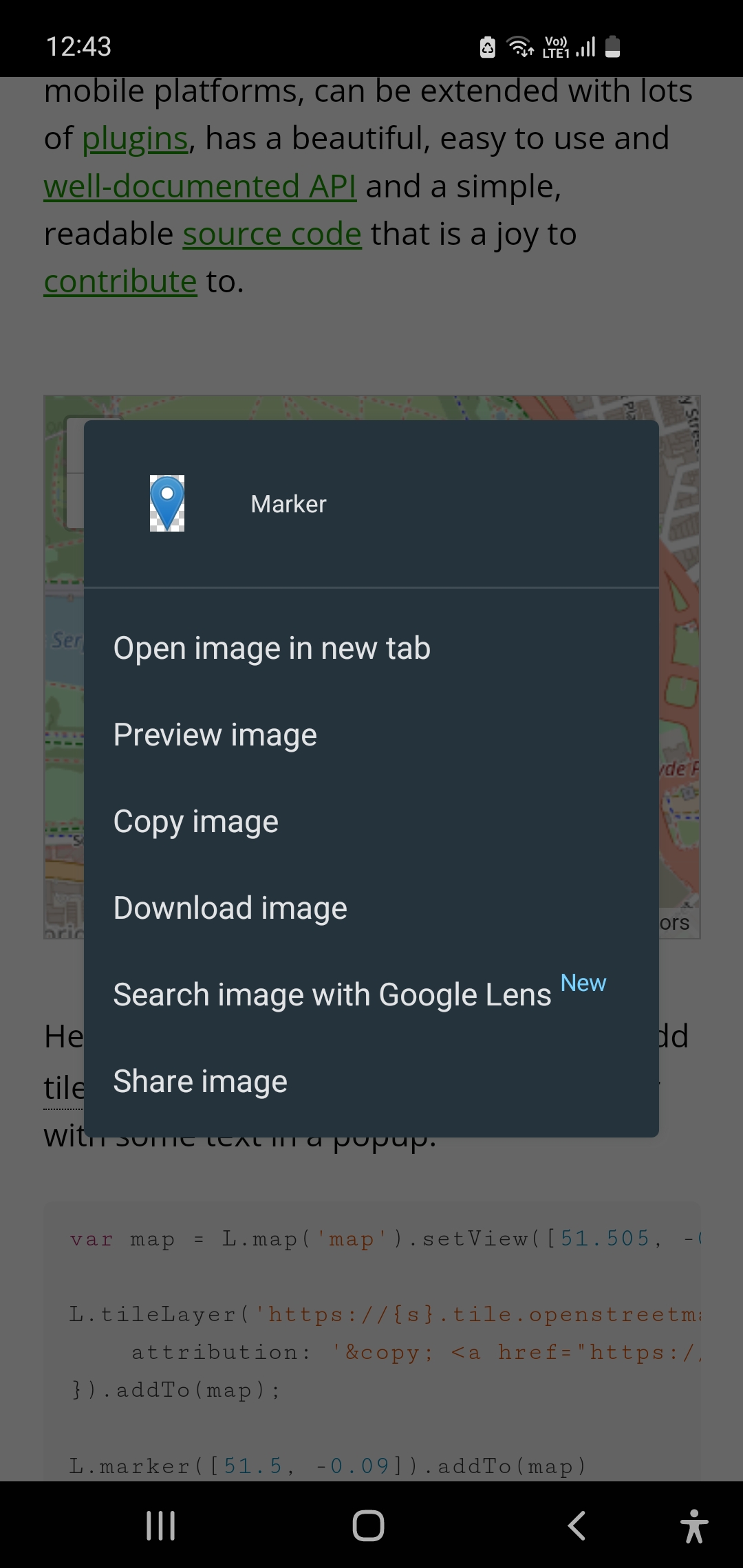 Longtap on markers prompts context menu to save the image