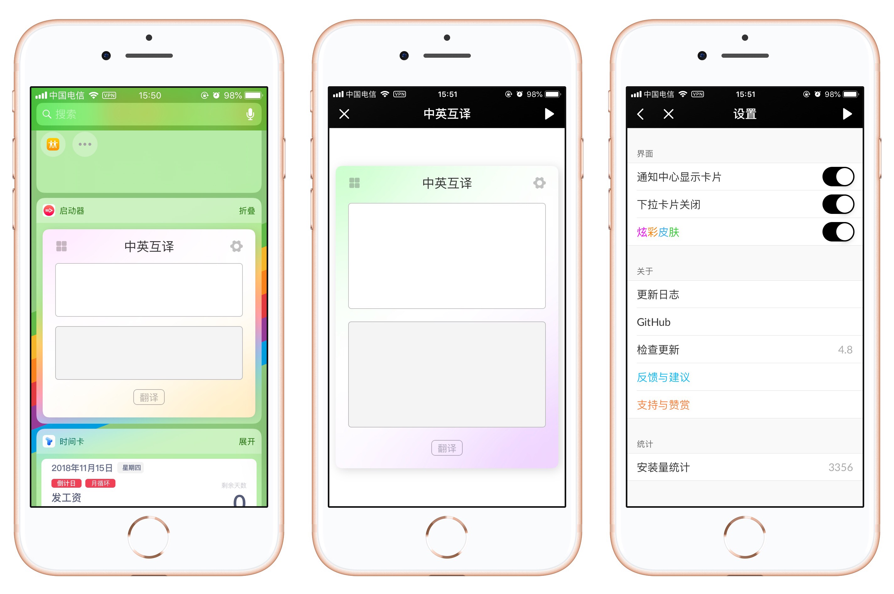 - 支持网页翻译(需代理)