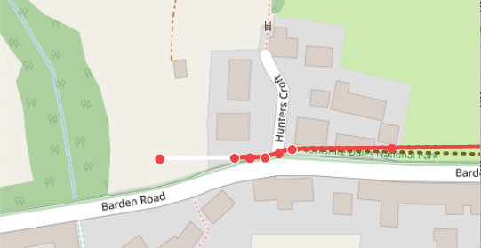 There is a visual glitch - sometimes one of the handles is just a white line. I can reproduce it in this scenario: a. Zoom in enough so that the end of a line feature is outside of the visible canvas b. Select the feature c. Start editing geometry d. When you move to the first handle, it is only a white line (see image below 👇🏻)