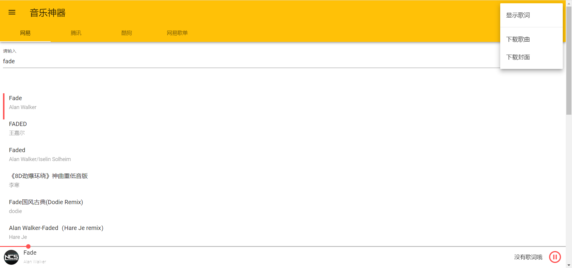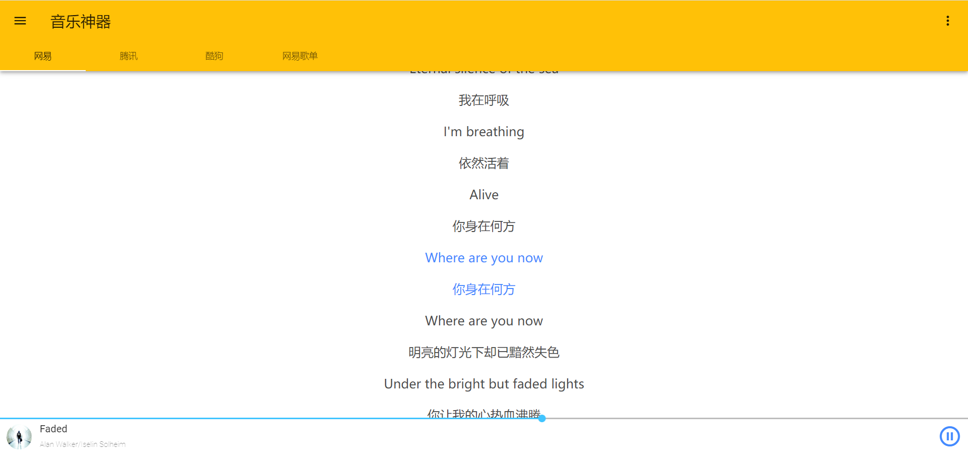 一个可以在线听网易云音乐、QQ音乐、酷狗音乐的音乐播放器,还可以让你听自己的网易云歌单哦!