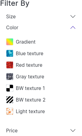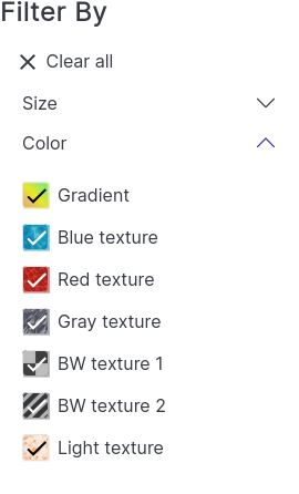 @SharakPL If you have a black and white texture then you will select 2 checkboxes: the black and the white. This is what e-commerce websites do today. Don't worry, there will always be a label. Please see my mockups just above.