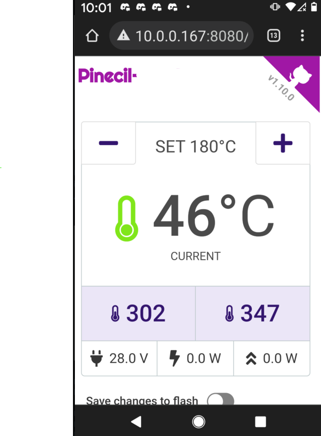 This is an example of exactly how PineSAM BLE bluetooth app looks on my phone when I'm running newest Pinecil V2 soldering Iron.
