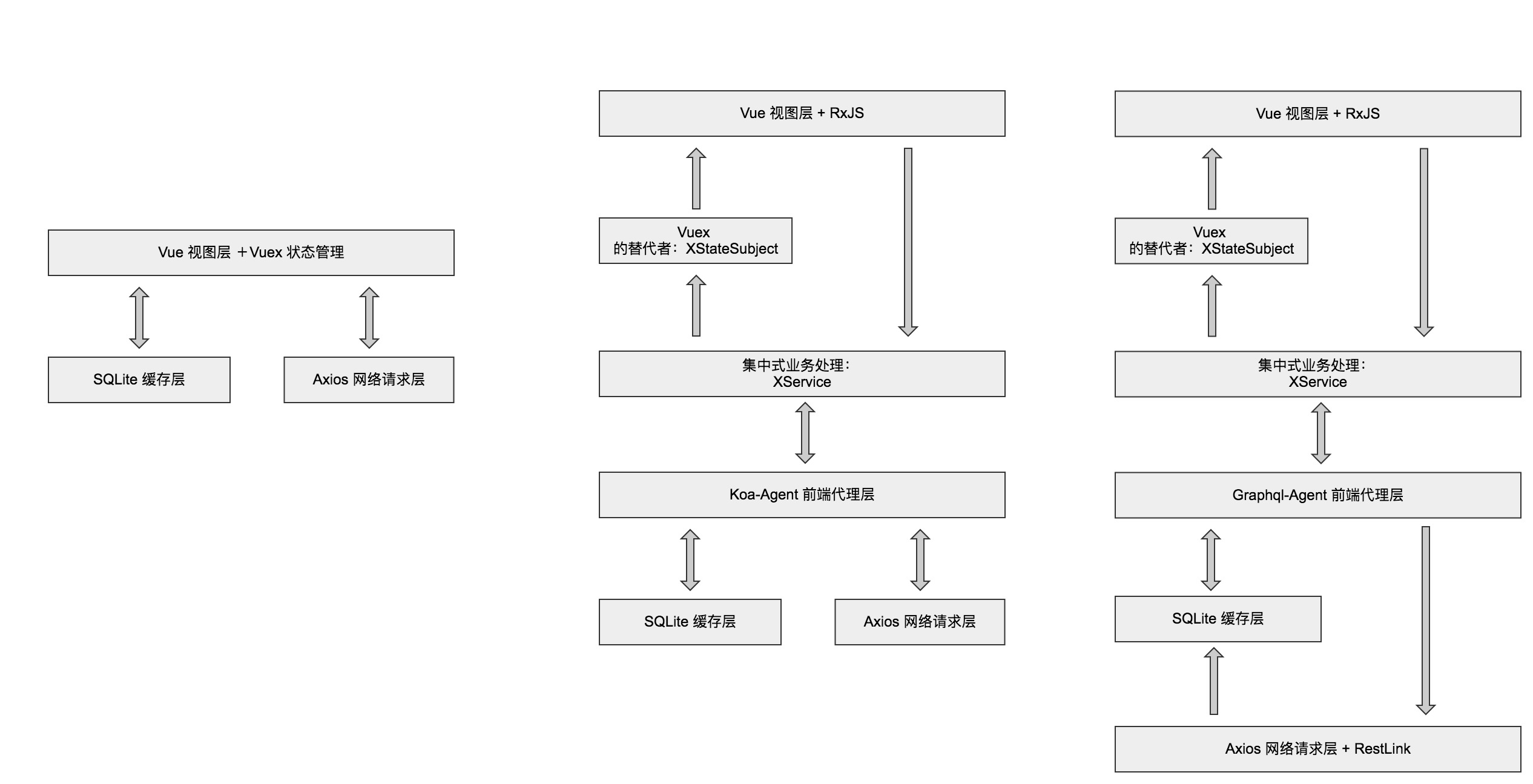 总结一下,相较于阶段一,阶段二最大的变化是增加了agent层,弃用Vuex,引入RxJS。产品PC 端第一版就基于阶段二的架构进行开发。整个版本开发下来,阶段二的架构中,最大的问题在agent层:
