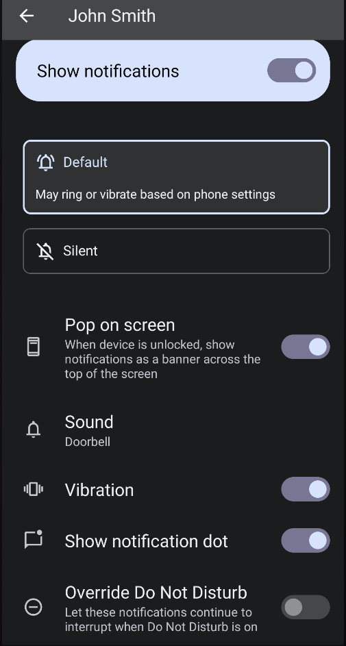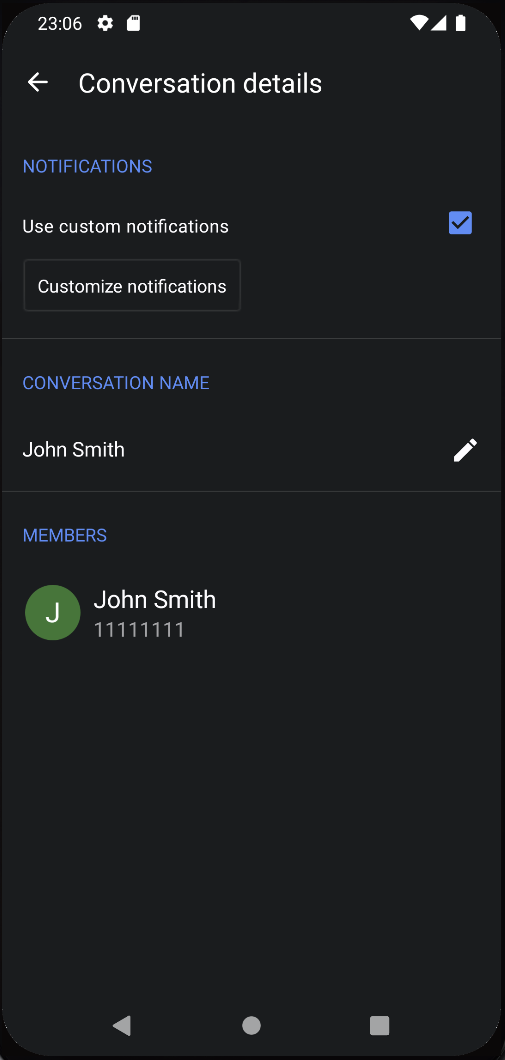 - It's possible to remove custom notification channel for conversation by unchecking the checkbox (not possible in some SMS messaging apps).