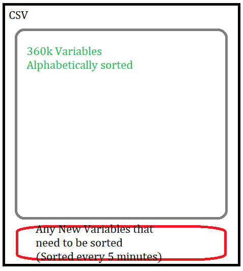 In my specific case, the csv is very large, and the red section that needs to be sorted gets pretty big after 5 minute during peak hours.