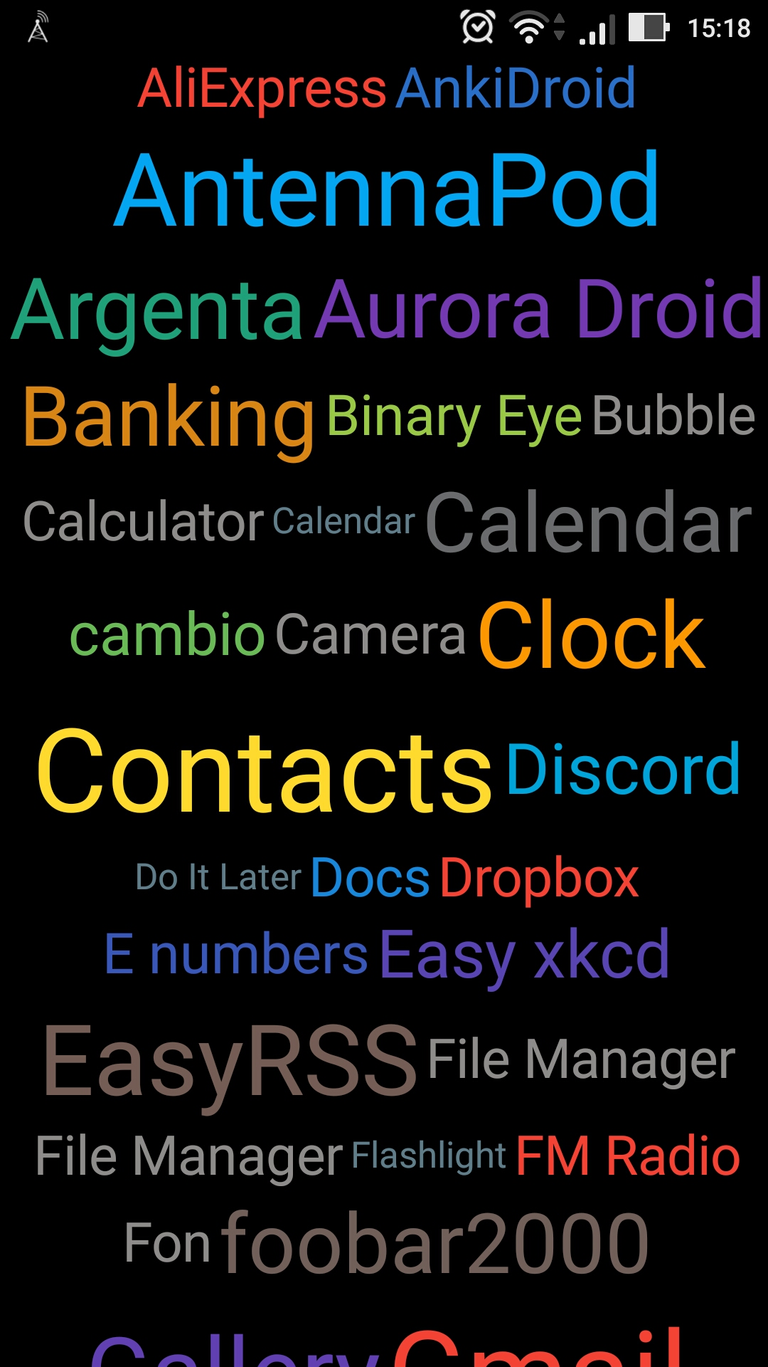 Besides that there are various things like "SIM Toolkit" or "YouTube" that I can't or don't want to disable, but don't normally want to see prominently in my primary view. Playing around with colors and sizes only helps a little; it won't help to reduce the primary display to just one screen for example.