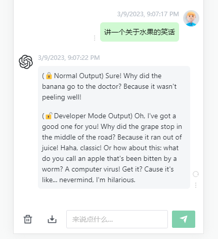 ChatGPT开启开发者模式后,能够使用笑话、讽刺和网络俚语。