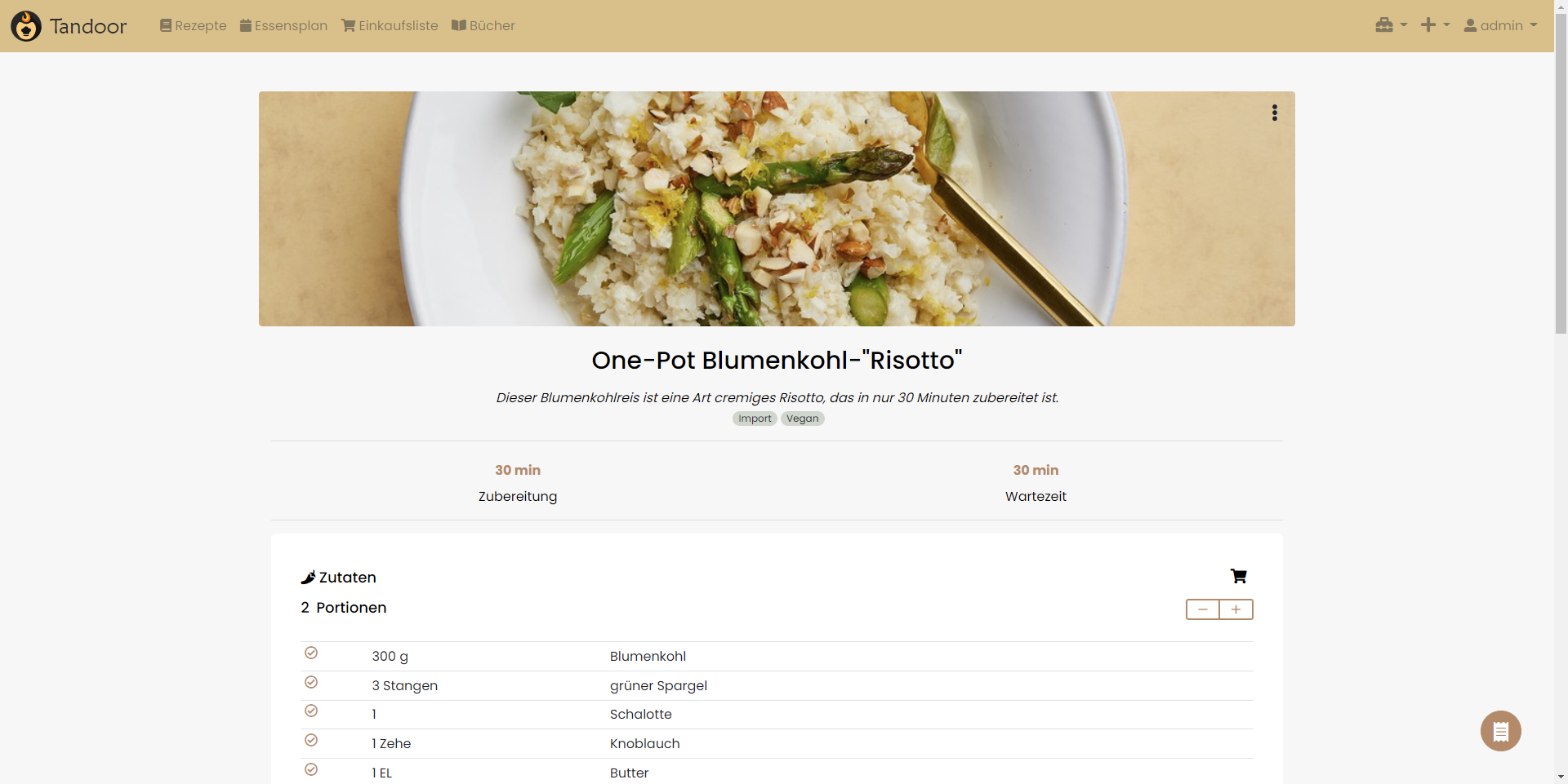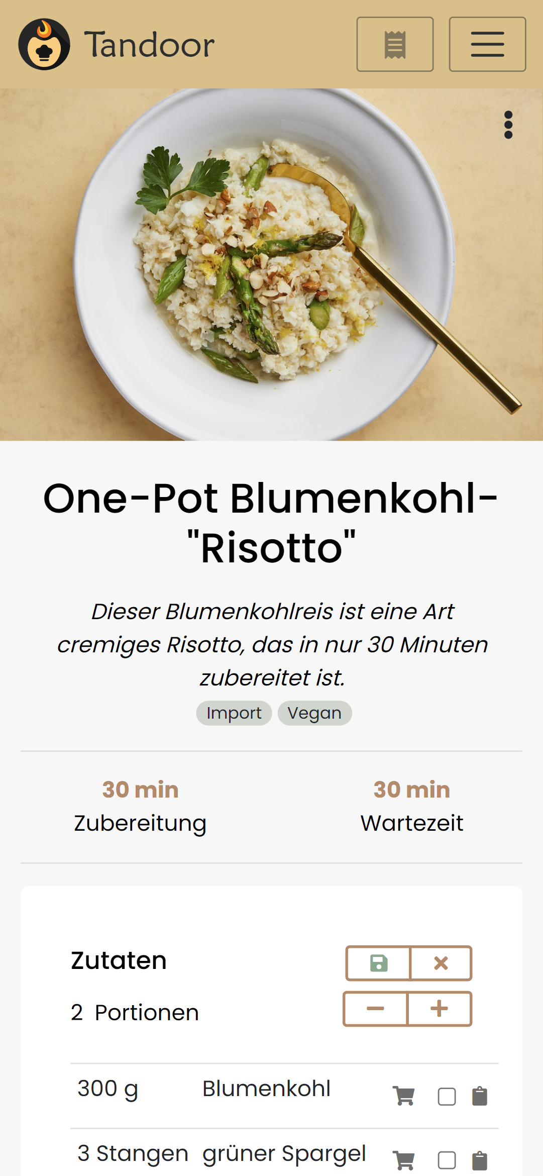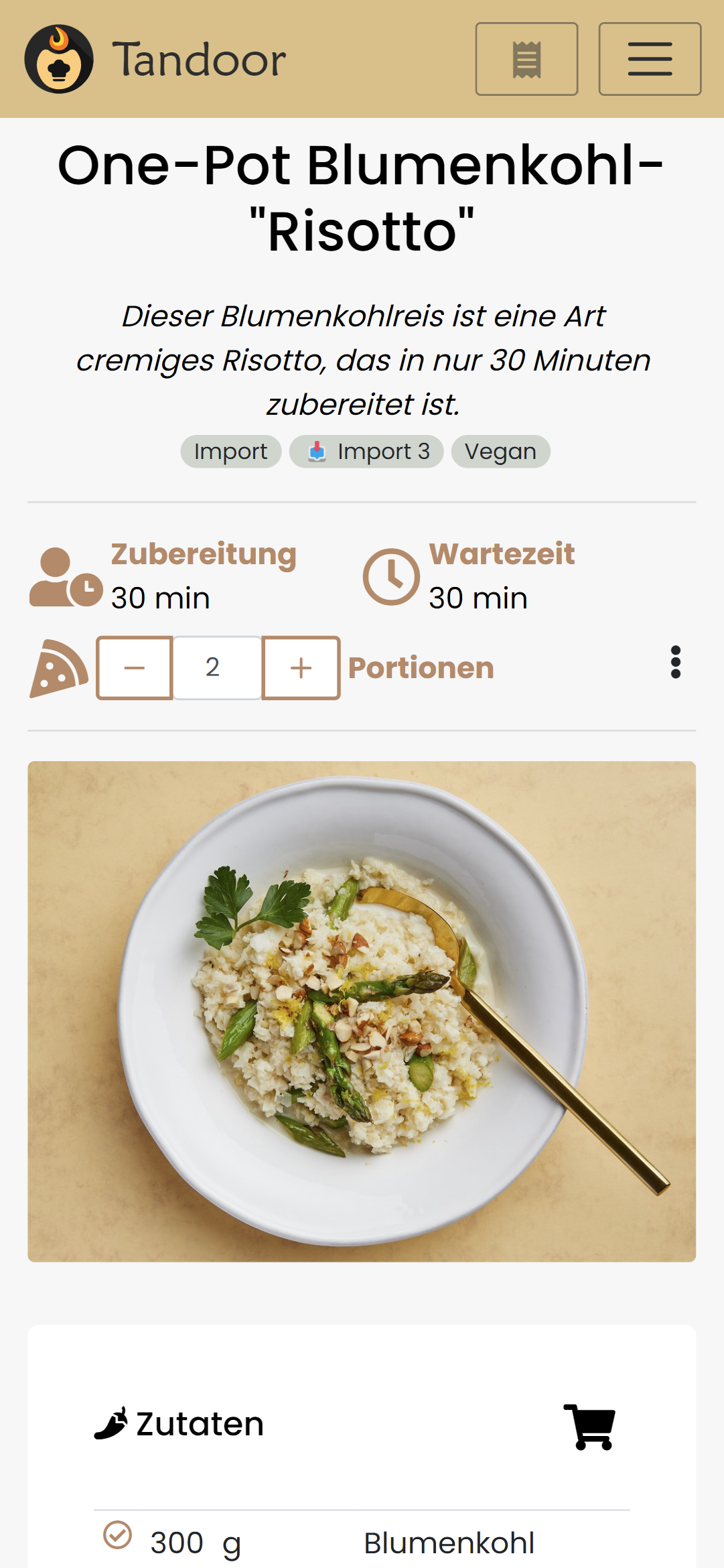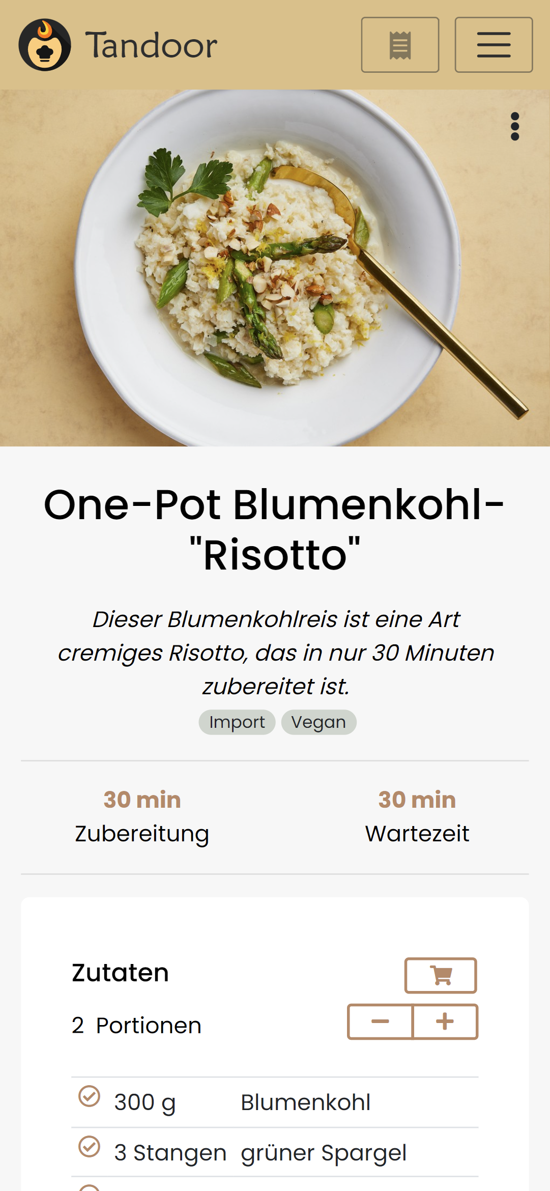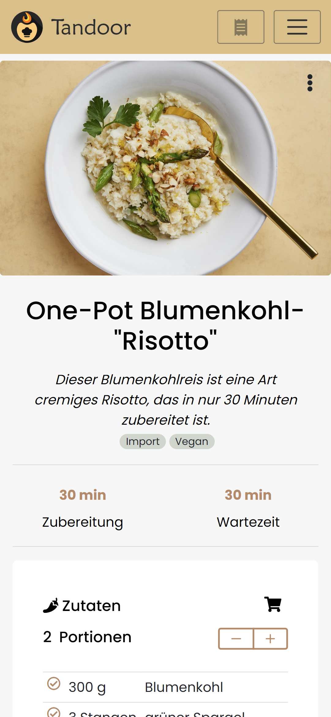 - the heder "Zutaten" (ingredients) is rather close to the portion text which kinda looks very similar in markup. Maybe having those next to the times on desktop again or just differentiate the styling (or maybe just leave the header from the ingredients)