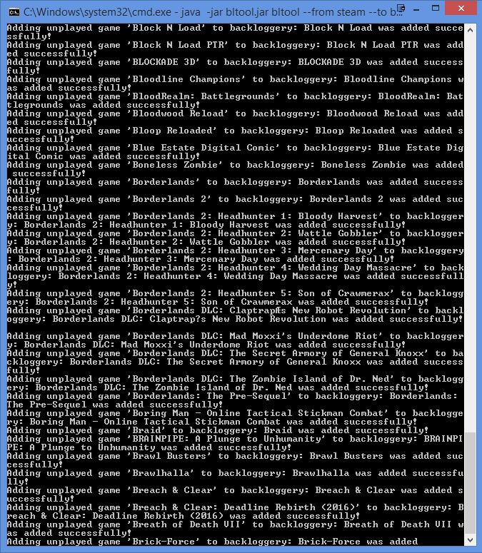 It was hanging on the "Logging in to backloggery" and i thought it was just failing somewhere but after about an hour it then updated with a whole heap of games at once being added, then every 20 minutes or so kept that cycle up until it got to here where it's just not doing anything from here out. I left it running over night because it's going through 1000 games so I thought "well maybe it's just adding them all at once and will update it all at once at the end like it's sort of been doing?" but it's still hanging on just this