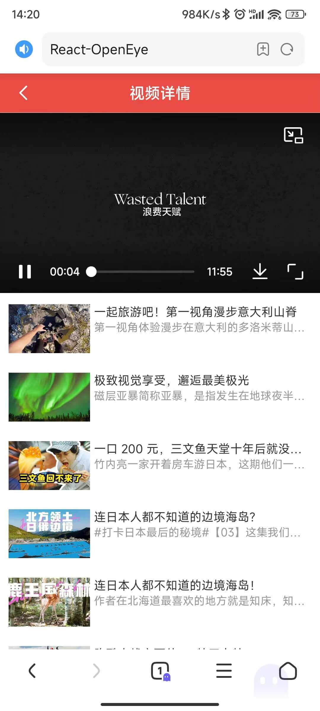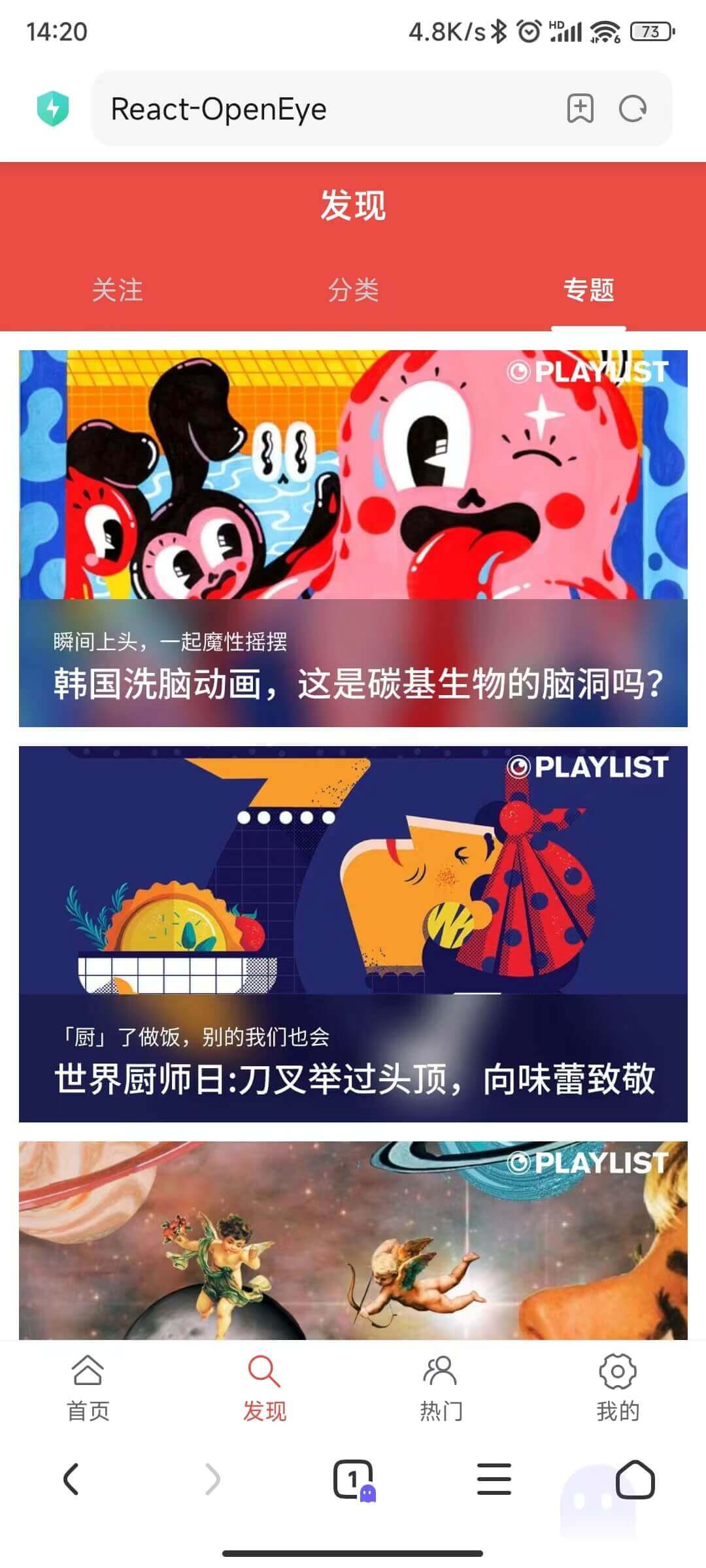 ReactNative版本的开眼App链接(ReactNative-0.72):https://github.com/WinWang/RNOpenEye