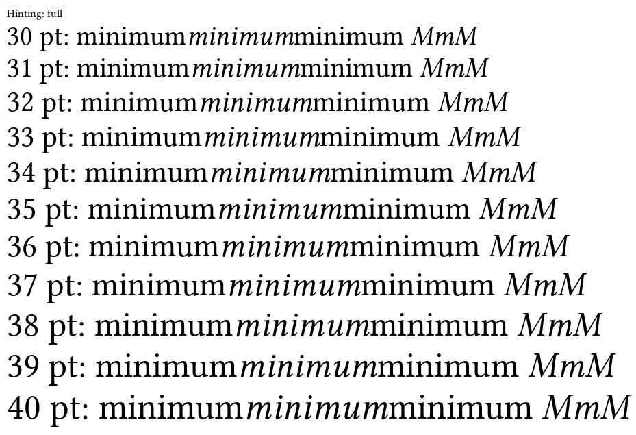 For example, in many sizes the baseline of the italic lower case lettters gets "rounded down", making the text look like it is set lower than the regular font and italic capital M.